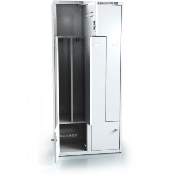 Height x width x depth (mm) - 1800x800x500 Colour - grey Lock - cylindric- High quality welded structure, door in a "Z" shape. - Effective ventilation system. - High resistance to breaking-in thanks to a door double-casing structure and stop area preventing breaking in the door or cutting the lock latch. - Each cabinet is lockable separately with a cylinder lock. - Equipment: a rod for hangers, 3 x hook. - High-quality powder paint finish. - Side holes for connecting into sets. - It is possible to get in addition a safety revolving closure for a padlock. - Optional accessories can be ordered additionally for every wardrobe (legs, a bench or safety revolving closure for a padlock).