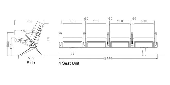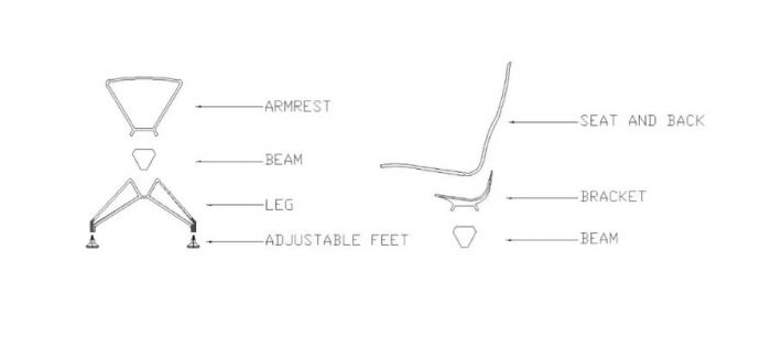 Seat: 1.5 mm cold-rolled perforated steel, aluminum side board, foam cushion padding.