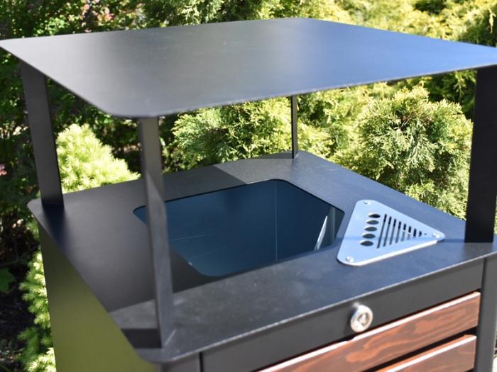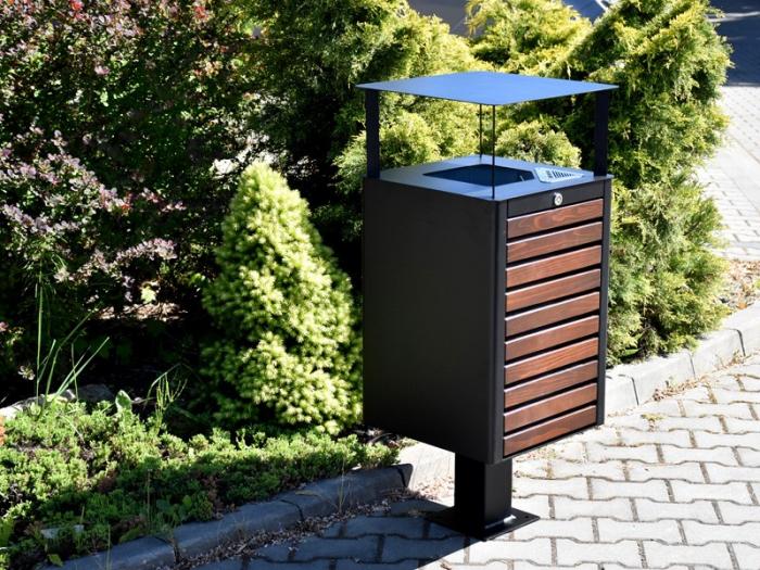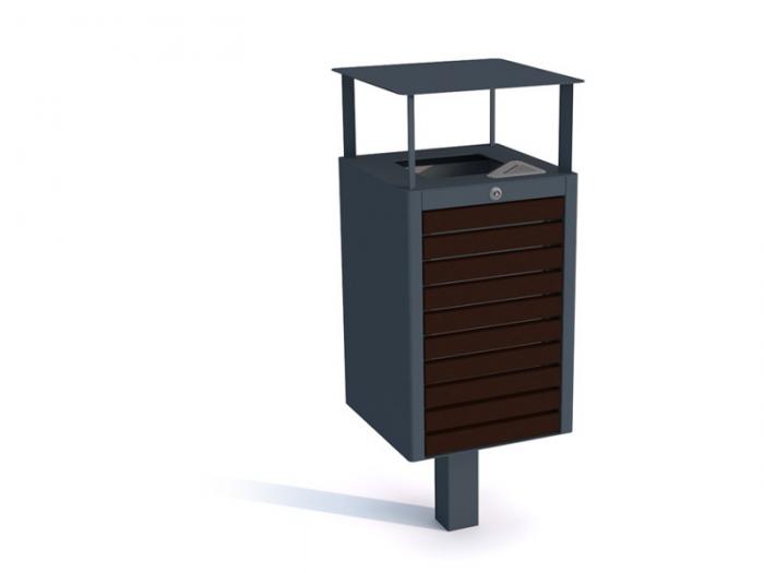 Waste bin - single made of 1mm sheet metal and coniferous wood. Available in galvanized and painted or stainless steel options.